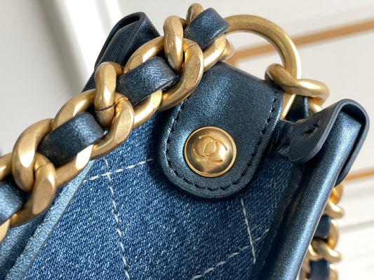 CHANEL 24s 20cm hobo bag blue denim gold hardware