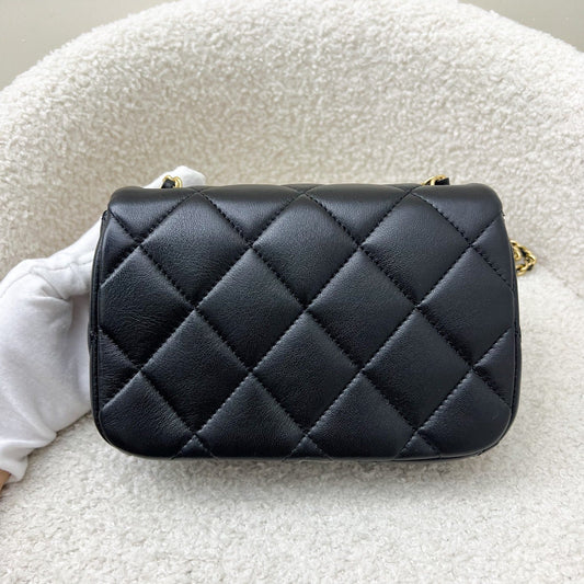 Chanel 24S Adjustable Pearls Chain Mini Flap in Black Lambskin and AGHW