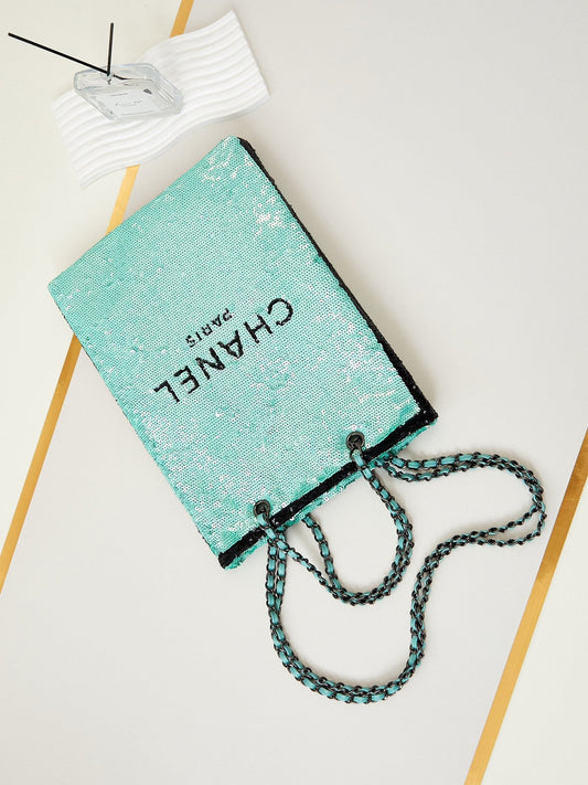CHANEL 24s31 shopping bag blue black sequins black hardware