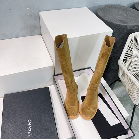 CHANEL 24ss Long Boot Brown Suede