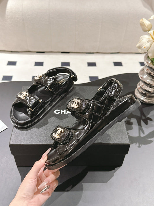 CHANEL 25 Dad Deals Sandals Black Patent Leather 237590