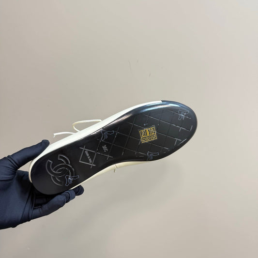 CHANEL 25 Mary Jane Flat White Leather with Fabric 239409