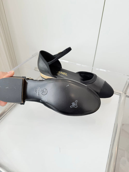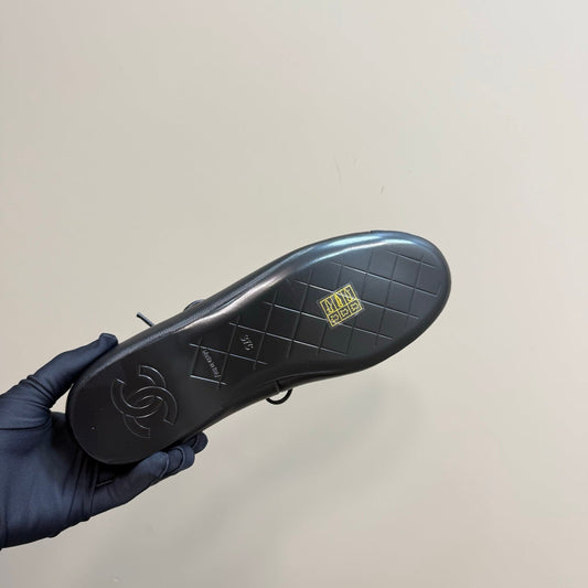 CHANEL 25 Mary Jane Flat Black Leather with Fabric 239412