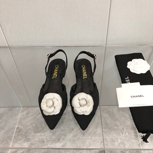 CHANEL 25C 5CM Slingback Flats Black Fabric 213241