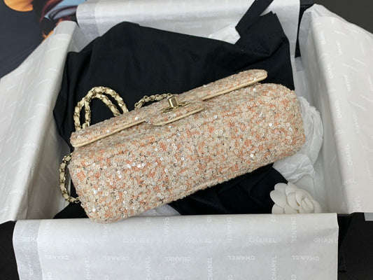 CHANEL 25C Flap Bag 21cm Dense Sequin White Calfskin