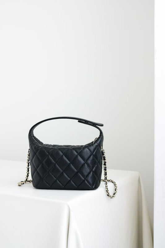 CHANEL 25C Hobo Bag Black Caviar Calfskin Silver Hardware 243623