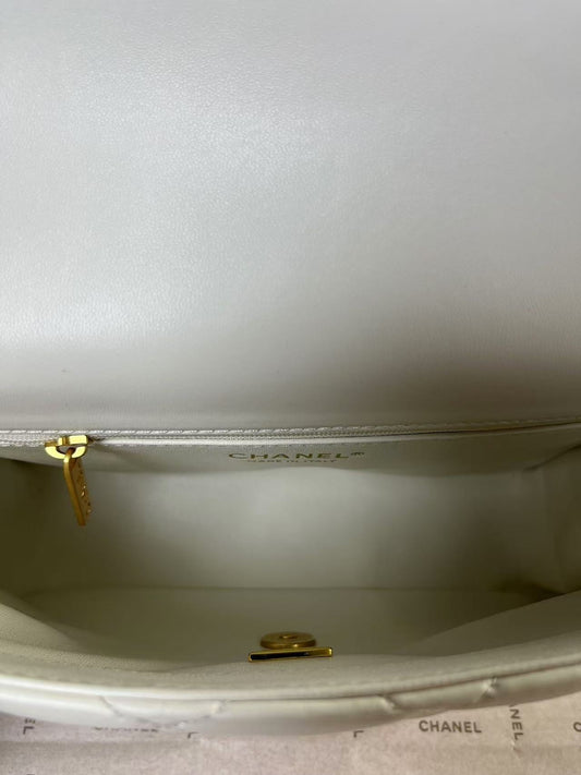 CHANEL 25C Mini Flap 24cm White Lambskin Gold Heart Hardware