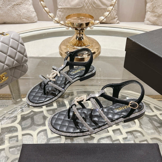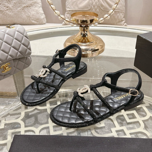 CHANEL 25C Thong Sandal Black Sheepskin 213339