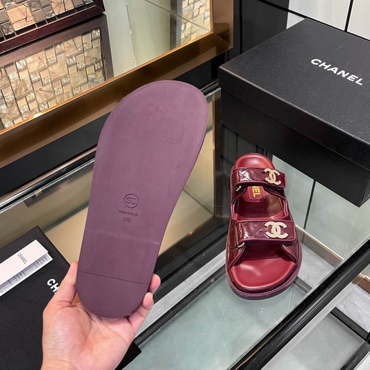 CHANEL 25S Dad Sandal Mule Burgundy Patent Calfskin