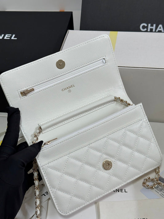 CHANEL 25P Wallet Woc Handle 17cm White Leather Silver Hardware 243442