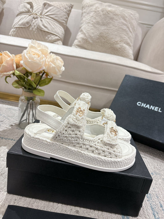 CHANEL 25S Dad Sandal White Tweed Calfskin