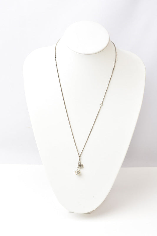 Chanel 2way Necklace/Pendant with Rhinestones and Silver CC Ball