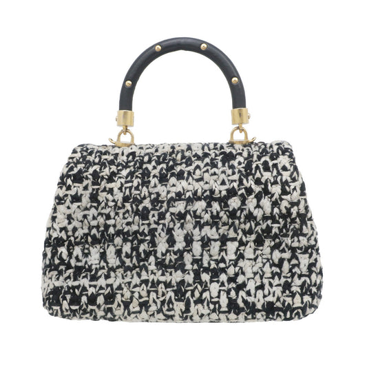 CHANEL 2WAY Handbag Tweed Sder Top Handler White X Black White X Black GD G