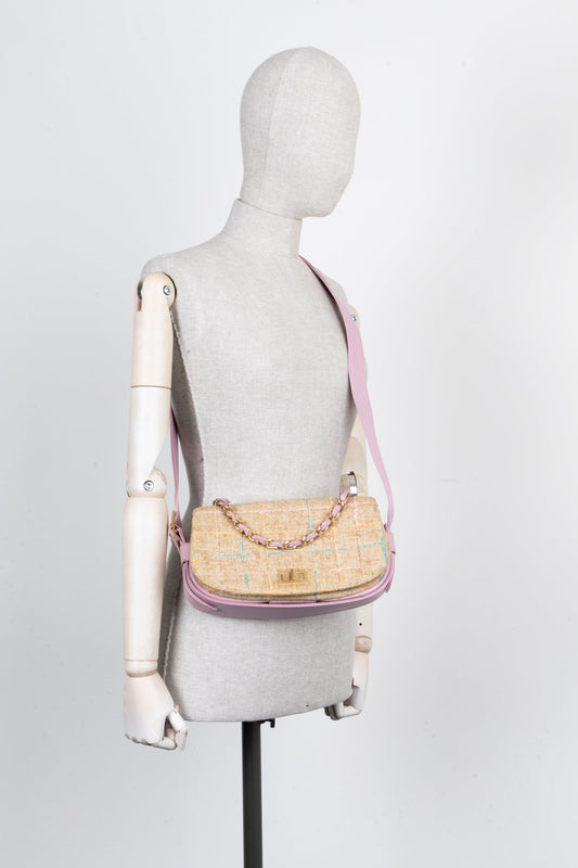 CHANEL 2Way 2.55 Turnlock Tweed & Purple Leather