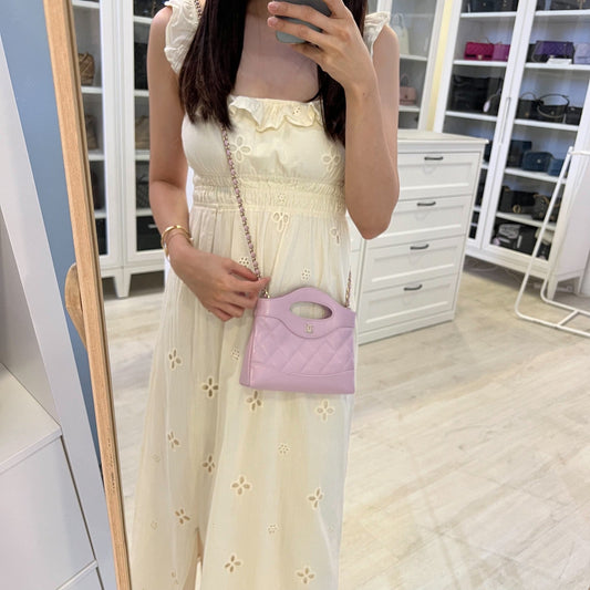Chanel 31 Nano Shopping Bag in Lilac Shiny Calfskin and LGHW (Model: AP3656)