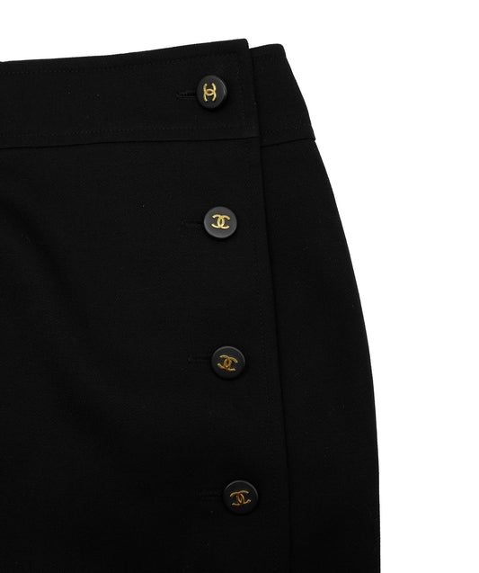 Chanel 97P CC Buttons Skirt Black #42 ASL7467