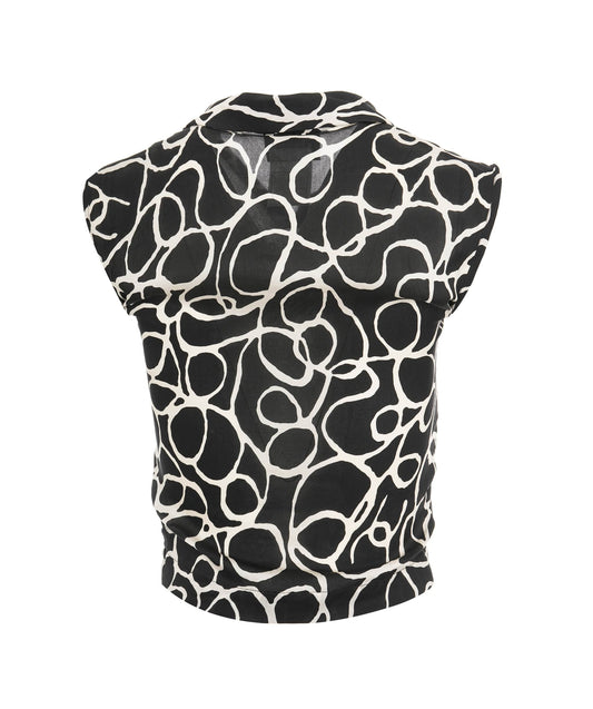 Chanel 98P Silk Top Sleeveless Black White ASL10851