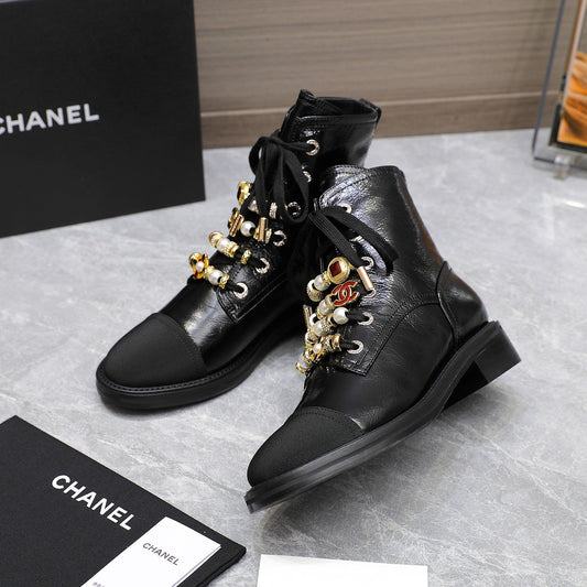 CHANEL Ankle Boots 50mm Black Chain Lambskin