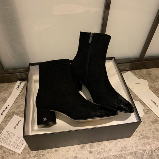 CHANEL Ankle Boots 50mm Black Suede And Glossy Lambskin 940056