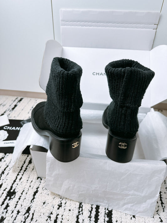 CHANEL Ankle Boots 50mm Black Wool And Cowhide