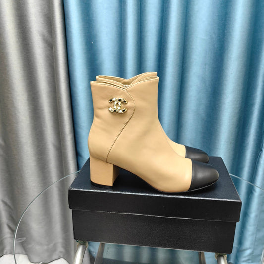 CHANEL Ankle Boots Beige Cowhide And Lambskin