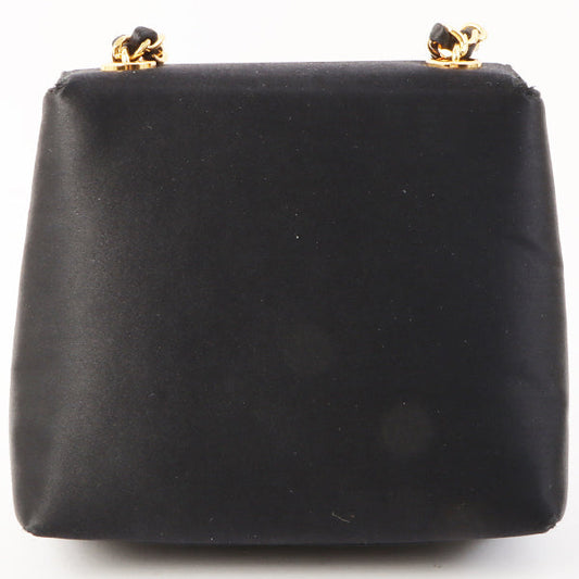 Chanel Around 1996 Made Satin Camellia Cc Mark Stitch Chain Shoulder Bag Black