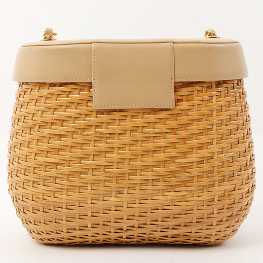 Chanel Around 1998 Made Rattan Turn-Lock Basket Chain Bag Beige