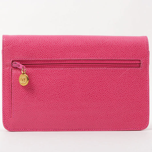 Chanel Around 1997 Made Caviar Skin Cc Mark Stitch Chain Wallet Fuchsia Pink