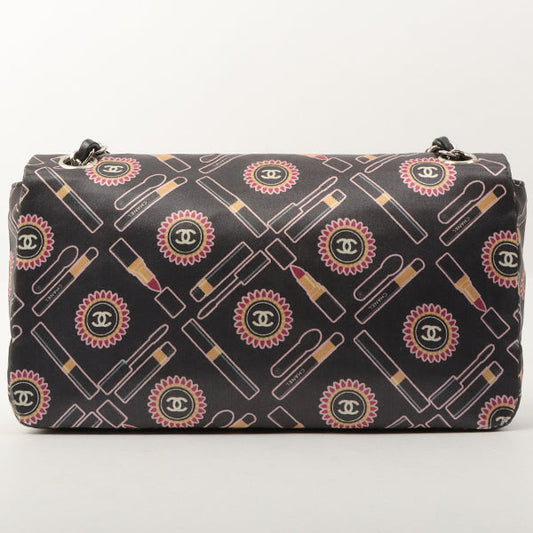Chanel Around 2005 Made Satin Print Classic Flap Chain Bag 25Cm Black / Multi