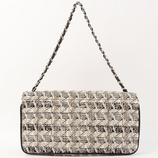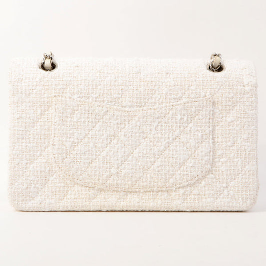Chanel Around 2003 Made Tweed Classic Flap Chain Bag 25Cm White