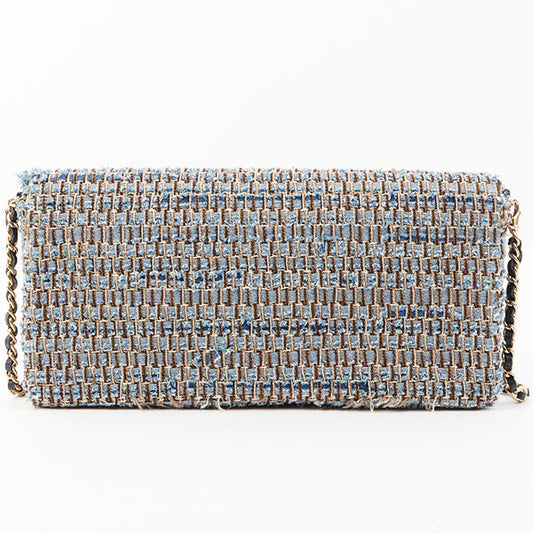 Chanel Around 2003 Made Tweed Chocolate Bar Chain Bag Indigo/Multi