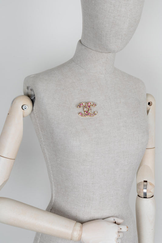 CHANEL B15C Rhinestone Coco Mark Necklace Big Long Chain Pendant