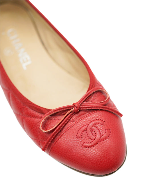 Chanel Ballerina Caviar Red CC Flats 36.5 ALC1934