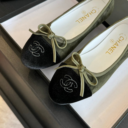 CHANEL Ballet Flat Navy Blue Suede 238766