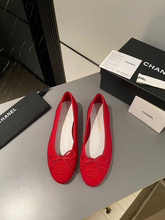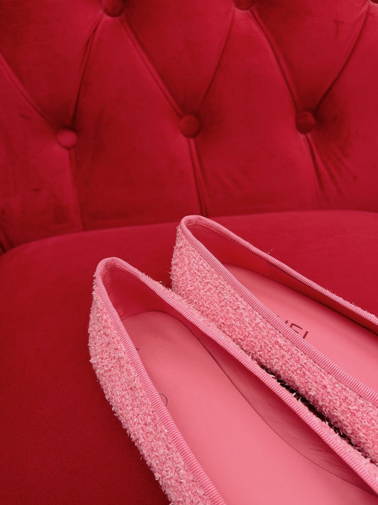 CHANEL ballet flat pink yellow green tweed white calfskin