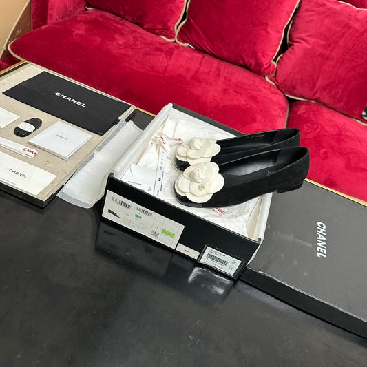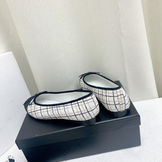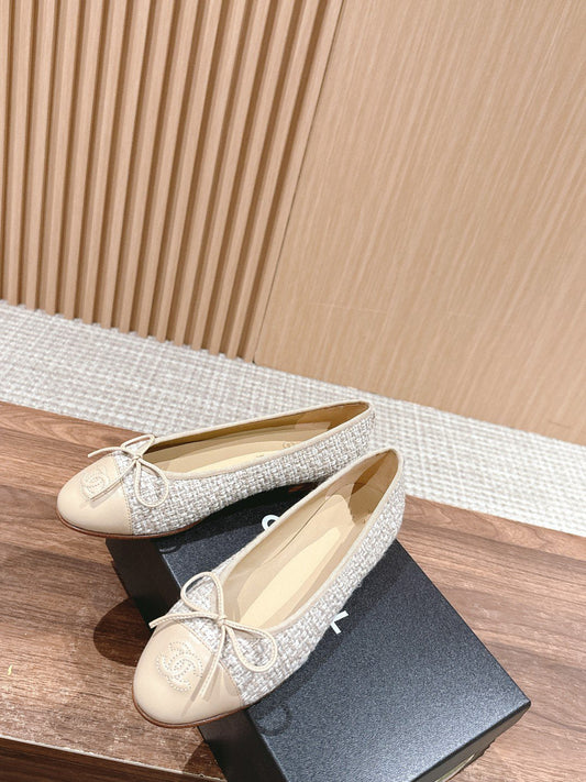 CHANEL BALLET FLAT WHITE CALFSKIN AND FABRIC