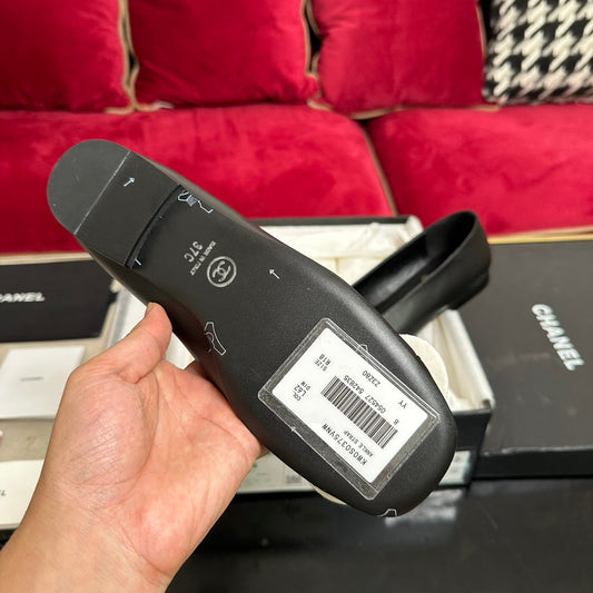 CHANEL BALLET FLAT WHITE LAMBSKIN WITH BLACK BOW