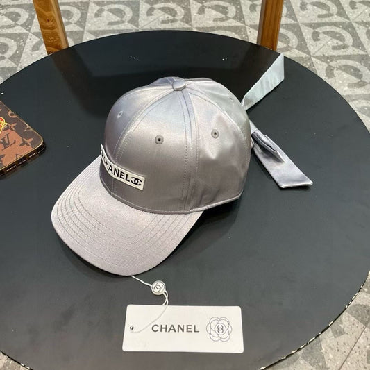 CHANEL BASEBALL HAT IN PALE GRAY SILK SATIN 404863