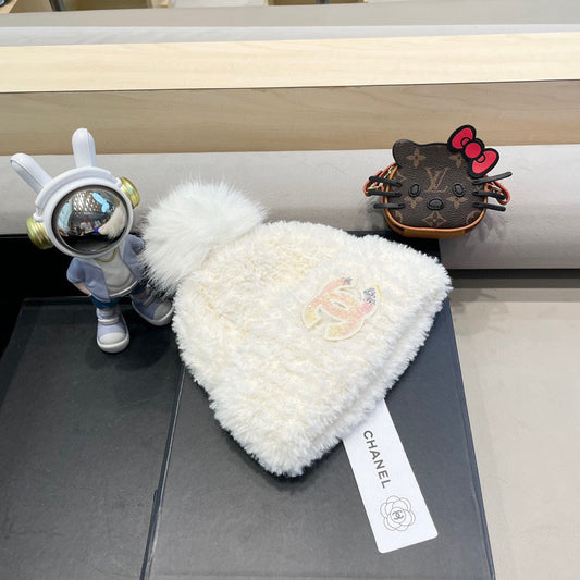 CHANEL BEANIE HAT IN WHITE CREAM SOLF FLEECE 419711