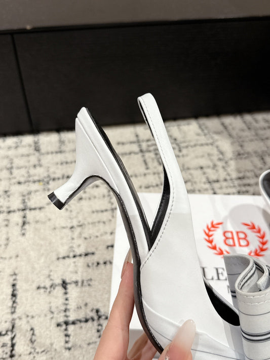 Balanciaga KNIFE CHEMISE 45MM SLINGBACK IN WHITE MIX BLACK COTTON AND CALFSKIN