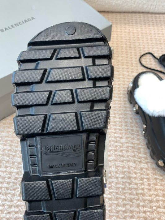 Balanciaga PLATFORM MULES IN BLACK RUBBER MIX RABBIT FUR SILVER HARDWARE