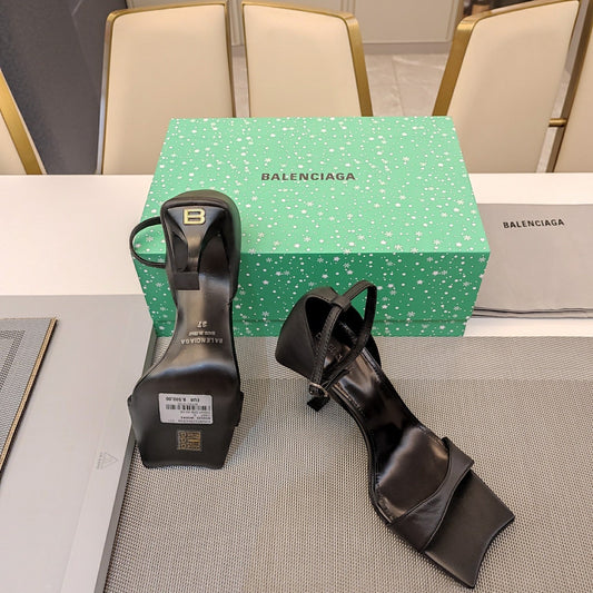 Balanciaga OPEN TOE STRAPPY HIGH HEEL IN BLACK CALFSKIN
