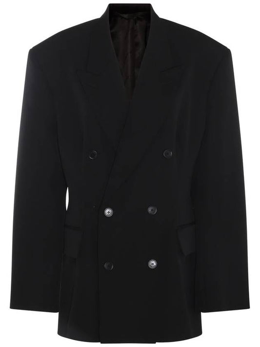Balenciaga Cinched Double Breasted Wool Jacket Black