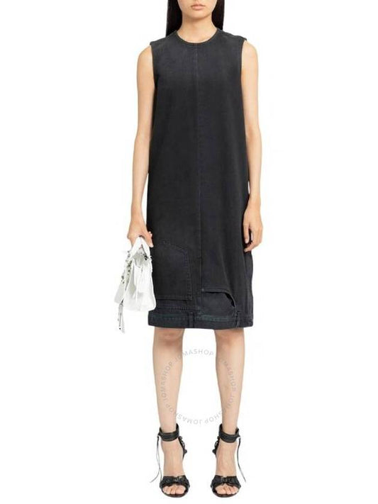Balenciaga Upside Down Denim Round Neck Sleeveless Midi Dress Black