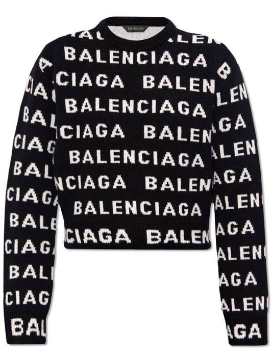 Balenciaga Intarsia All-Over Logo Crew Neck Knit Top Black