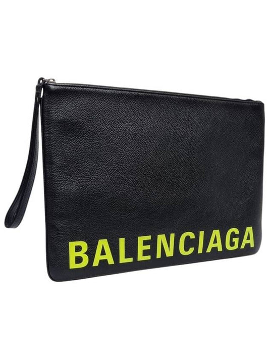 Balenciaga 594493 Neon Printing Logo Black Clutch