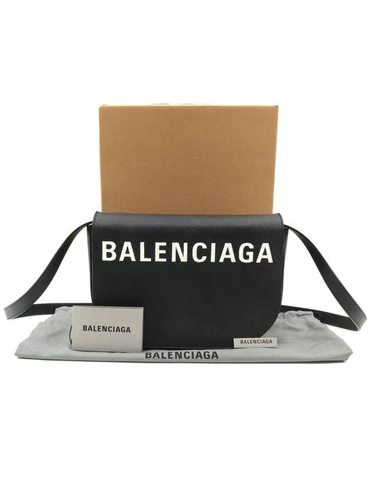 Balenciaga 542207 Black leather lettering logo Bill Day gold plated small cross bag