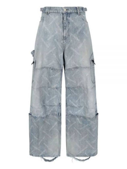 Balenciaga Bal Diagonal Allover Cargo Wide Jeans Blue