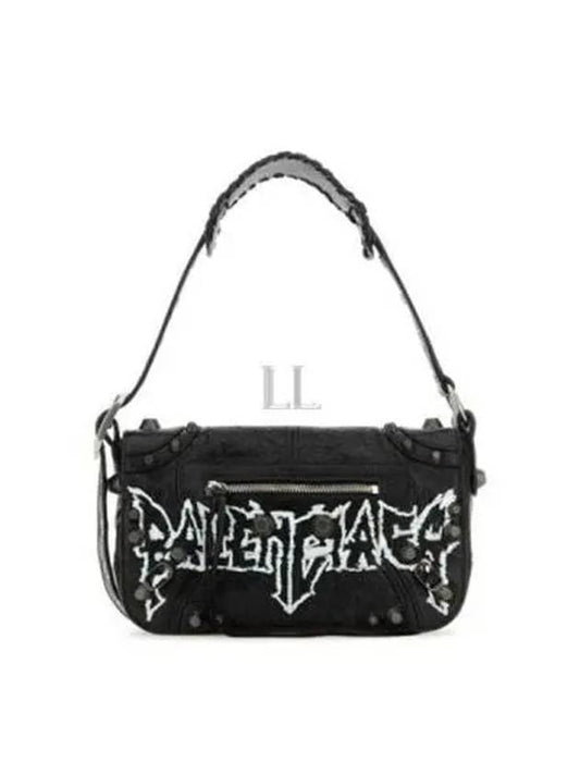 Balenciaga Zipper Stud Arena Lambskin Shoulder Bag Black