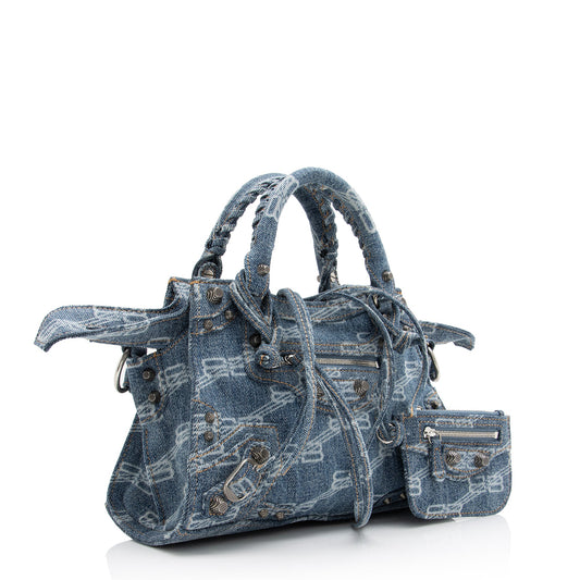 Balenciaga BB Monogram Denim Neo Cagole City XS Satchel (SHF-23464)